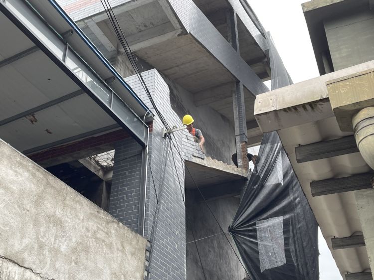 第二阶段的拆除行动主要建筑为五层砖混结构房,由7月18日开始为期三天的拆除。由于待拆房屋离高压线过近,为保障周边电力及施工人员安全,拆除工作首先从两侧楼梯开始人工向内进行拆除,之后将使用挖机对低层进行拆除,将房屋倒向高压线反方向。