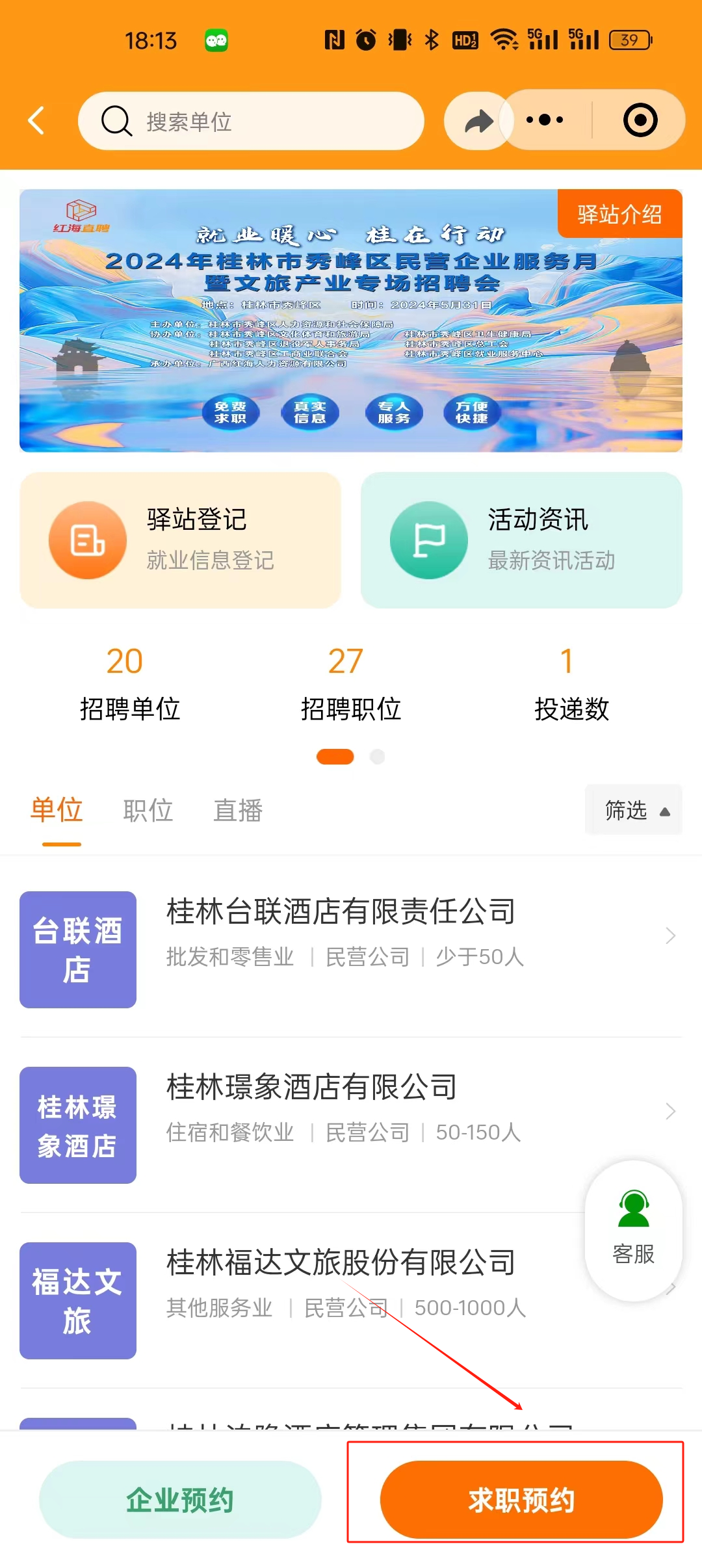 1、点击“求职预约”。