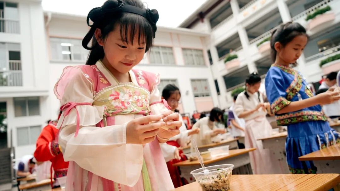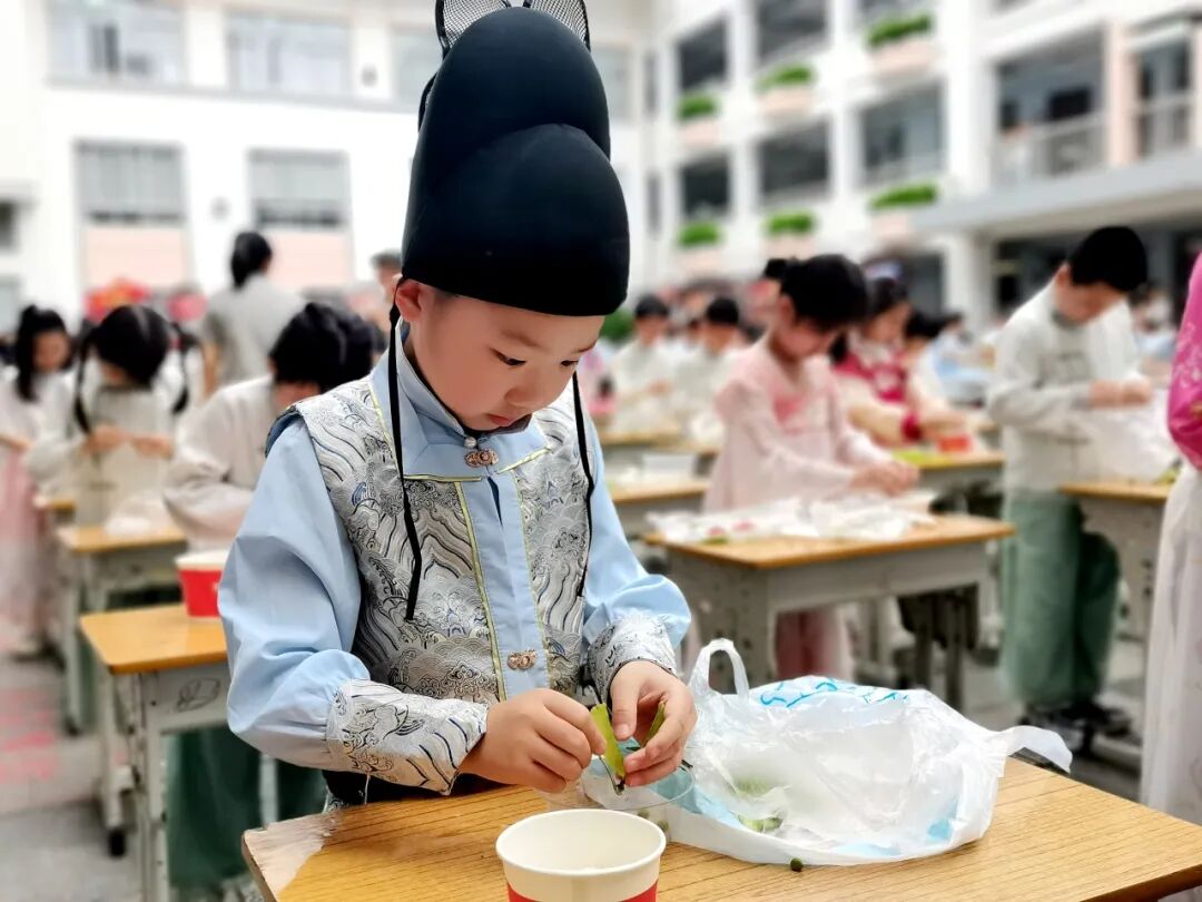 在欢快的劳动号子中,学校党支部书记、校长刘薇热情致辞。随后,劳动运动会开始,各年级按照学校为其量身定制的劳动任务单进行激烈地角逐。比赛项目包括低年级的叠班服、系鞋带、剥青豆、剥鹌鹑蛋;中年级的包书皮、包饺子;高年级的缝香囊、十八酿。每一项都是对学生日常生活技能的检验。