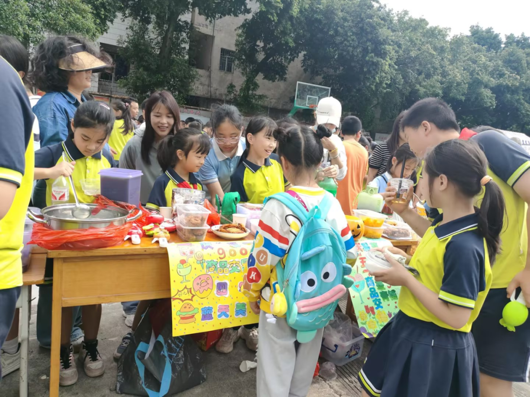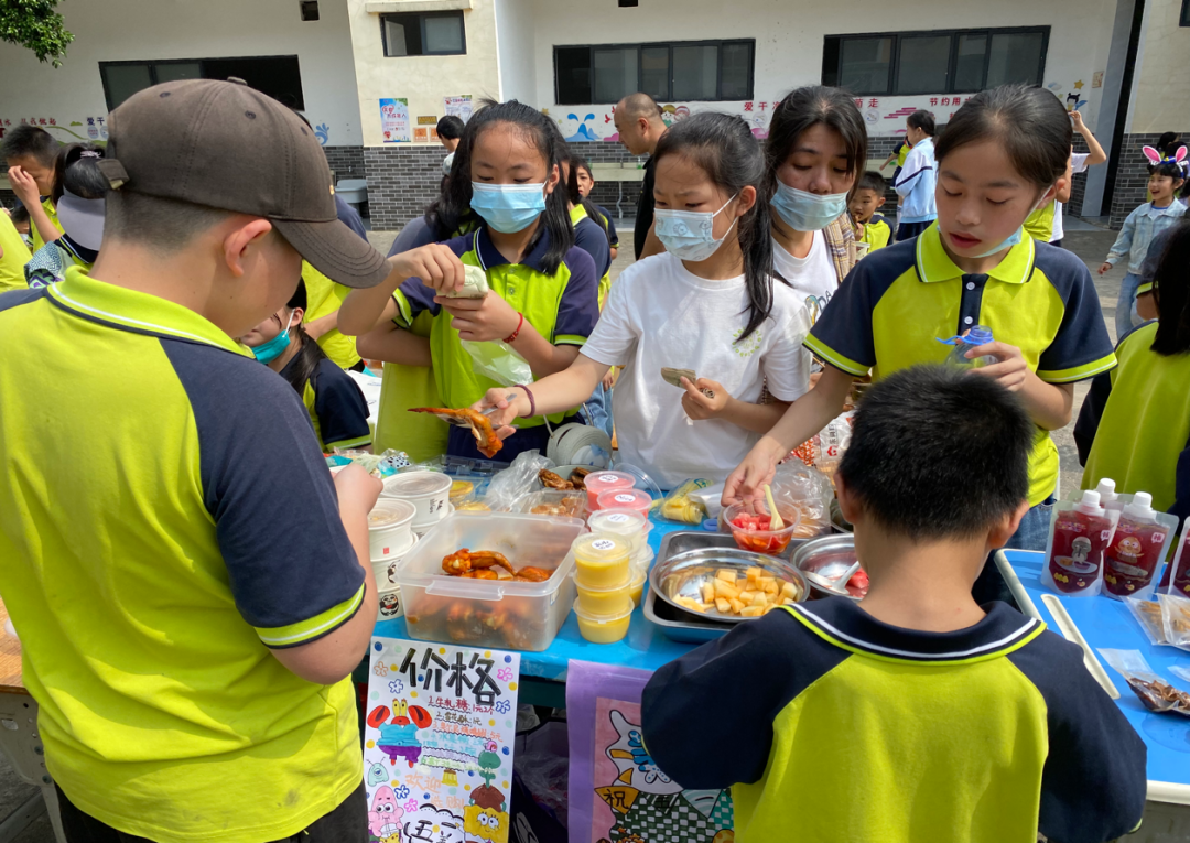 最让人流连忘返,莫过于“美食圩”了。这里展示了同学们在老师和家长的指导下精心制作的各色各样的美食,既有鲜香美味的串串香、卤鸭翅、凉拌鸡爪,还有解腻又诱人的水果布丁......同学们在摊位前都挪不动脚了,感叹劳动的伟大和美好的同时把自己的肚子也吃得鼓鼓的!