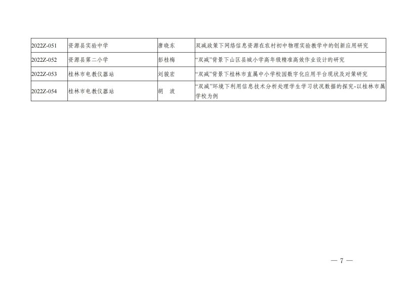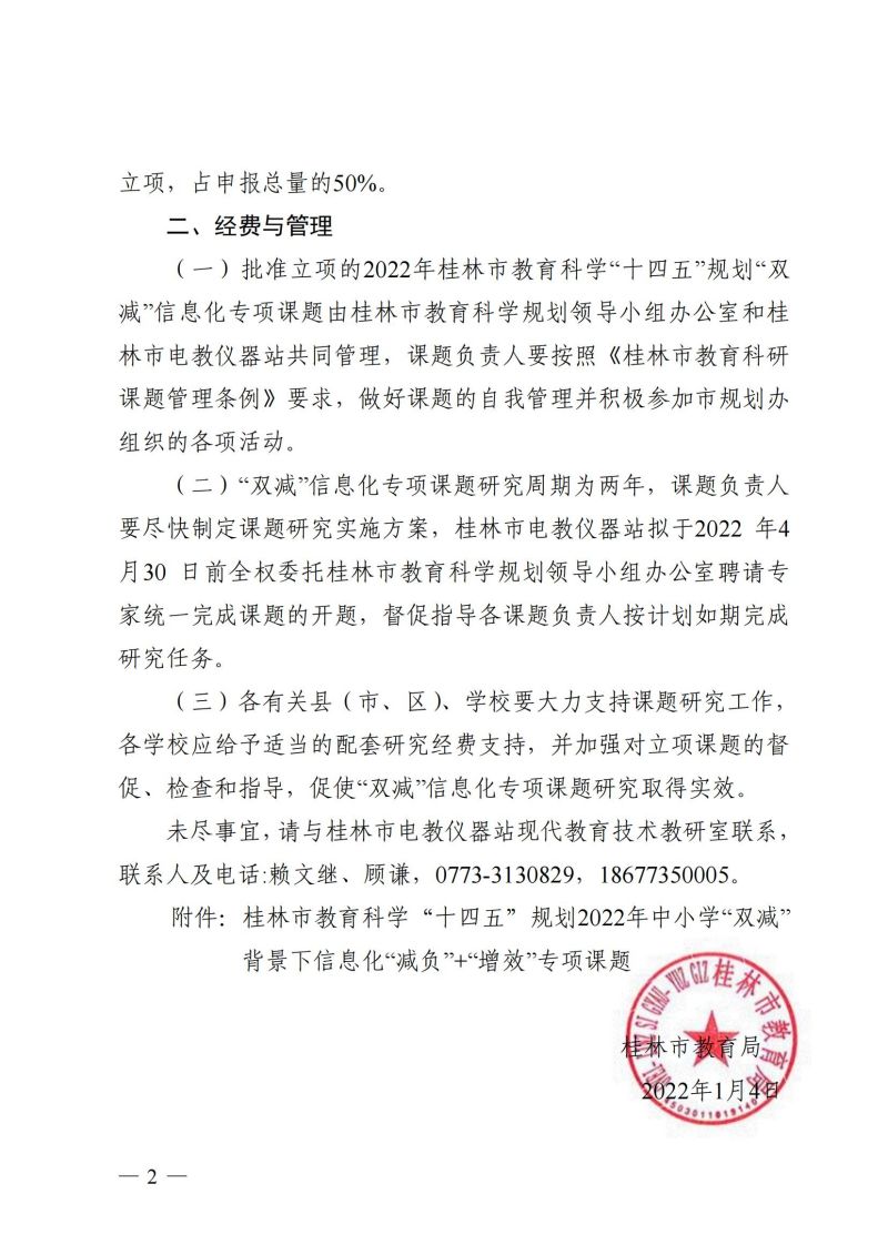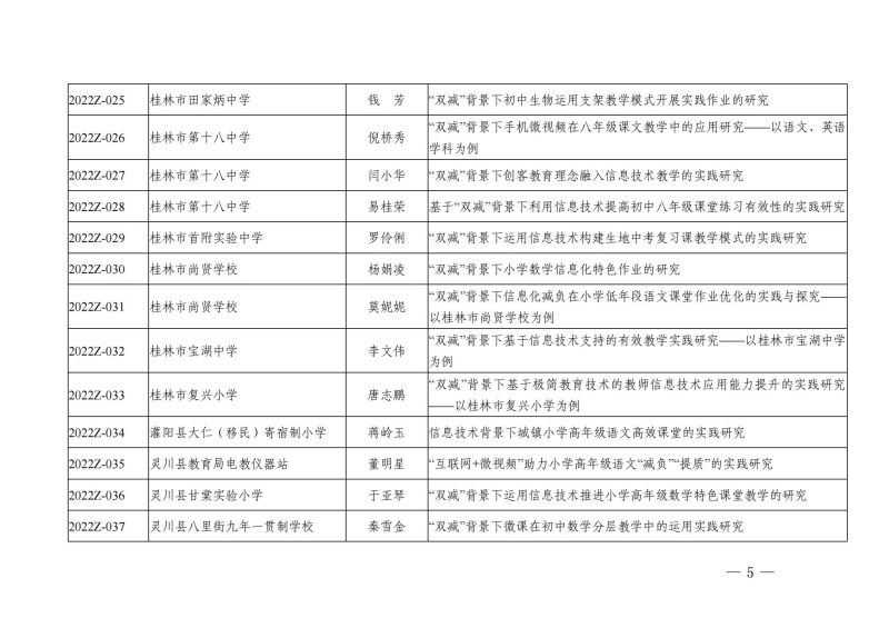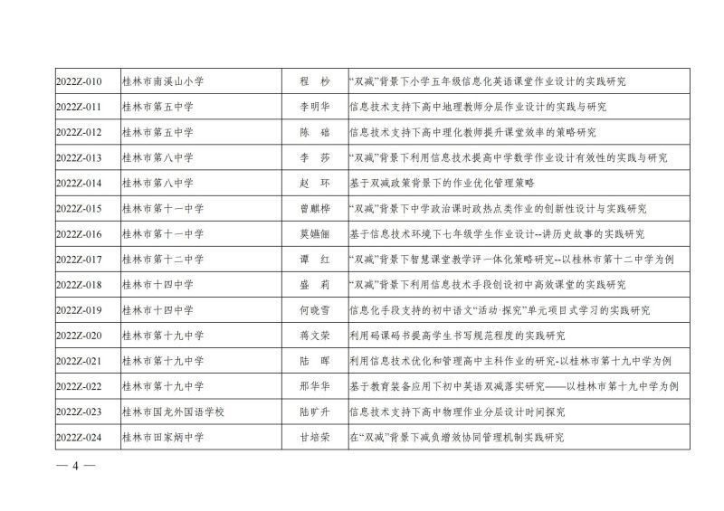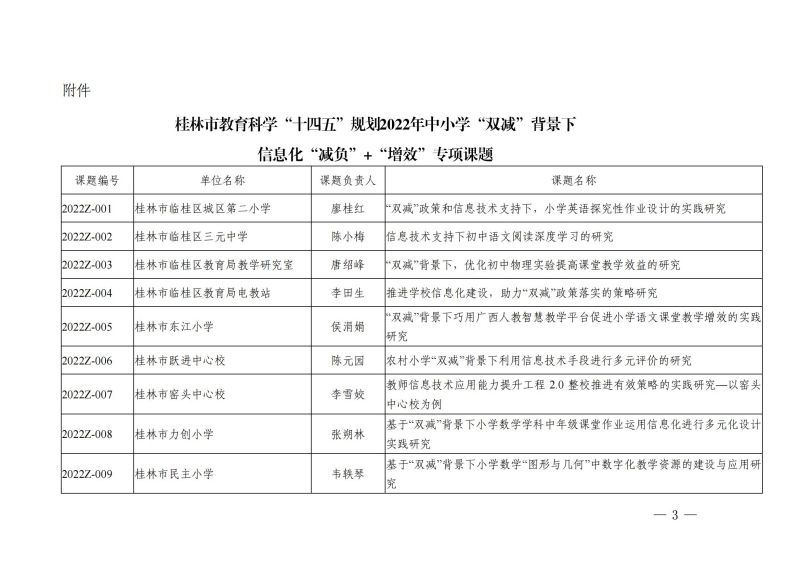 市教科〔2022〕1号 关于公布桂林市教育科学"十四五"规划2022年中小学"双减"背景下信息化"减负"+"增效"专项课题立项通知