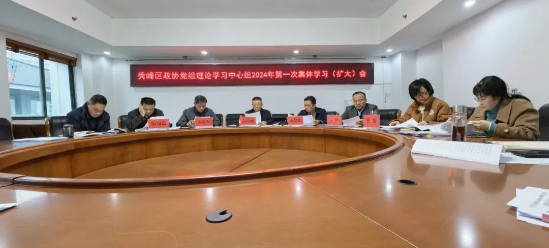 1月11日,桂林市秀峰区政协党组召开理论学习中心组2024年第一次集体学习(扩大)会。区政协党组书记、主席苏绍坤主持会议并讲话,要求以习近平新时代中国特色社会主义思想为指导,全面贯彻落实党的二十大精神,真正做到用理论武装头脑,用理论指导具体工作实践。区委统战部部长兼政协党组副书记龙宪智,区政协党组副书记、副主席卫东军,区政协党组成员、副主席狄加,区政协党组成员、秘书长唐红英参加会议,区政协非党副主席王洋、伍发进,区政协机关全体人员列席会议。