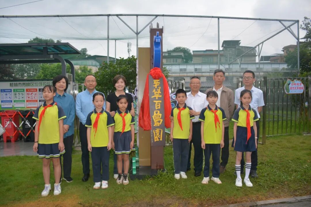 当天,刘筱璇委员捐赠了价值2000元的书包和15件矿泉水、谢香珍委员为该校劳动种植基地捐赠了有机肥料1500斤、政协三组委员集体捐赠了3只孔雀、释正慈委员为8名家庭困难学子每人捐赠爱心奖学金500元;秀峰区政协主席苏绍坤,副主席卫东军、王洋、伍发进、狄加与区教育局负责人还为该校“辛翠˙百鸟园”揭牌。