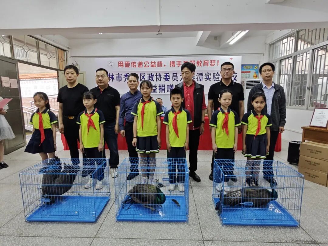 据悉,桂林市琴潭实验学校特别重视孩子们和大自然的亲近、融入,为此特地开设了劳动种植基地和百鸟园,以便培育小朋友们的劳动能力和热爱自然、保护动物的自觉意识。为支持该校的特色活动,秀峰区政协积极与委员对接,最终确定捐赠动物和有机肥料。另外,该校学生多为进城务工子女,不少家庭环境比较困难,所以也发动委员们在物质上进行了捐助。