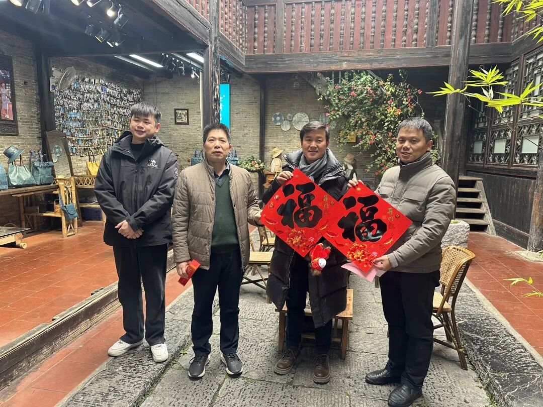 走访期间,街区管委会主任吴明忠带领大家带着精心准备的“福”字逐户登门,与商户亲切攀谈,认真倾听大家对街区文化传承、春节期间经营的意见建议,把关怀切实送到商户心坎上。