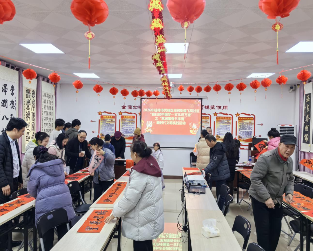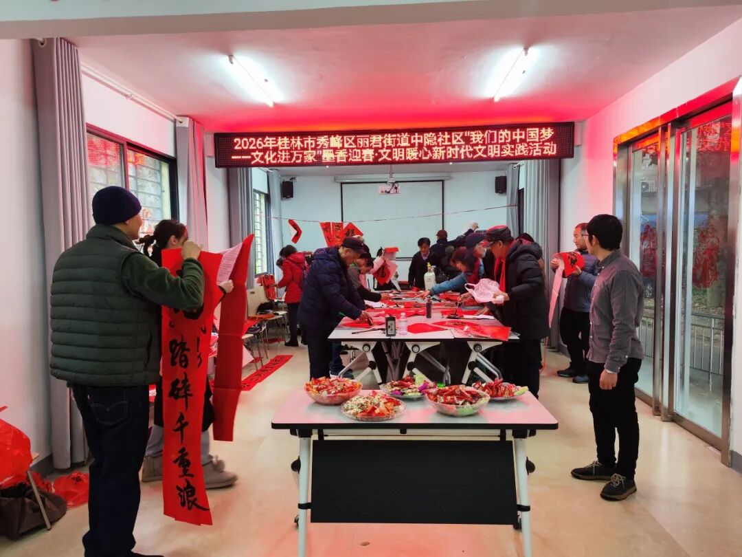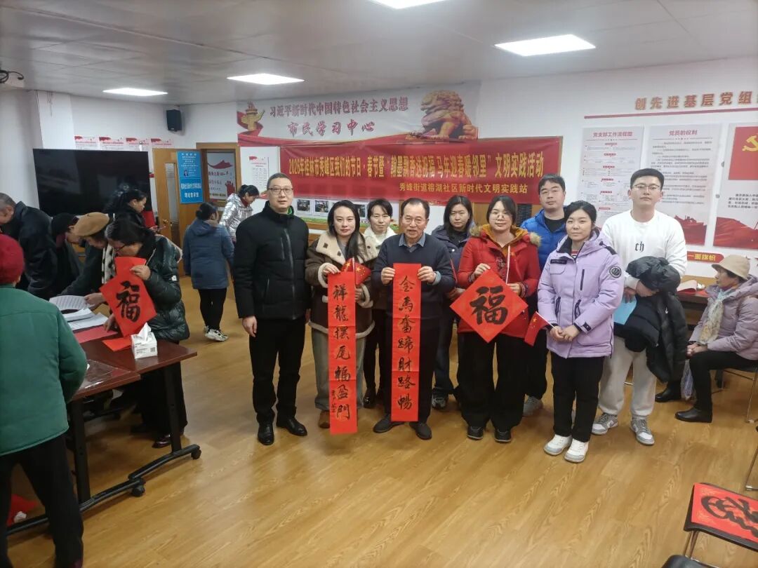 春节将至,年味渐浓。为传承中华优秀传统文化,营造喜庆祥和的新春氛围,秀峰区各新时代文明实践中心、所(站)围绕“我们的中国梦——文化进万家”“我们的节日·春节”“移风易俗”“文明暖心”“温暖八桂”等主题,组织志愿者和居民们开展春联送福、非遗剪纸、拓印、做年宵花等文明实践活动。