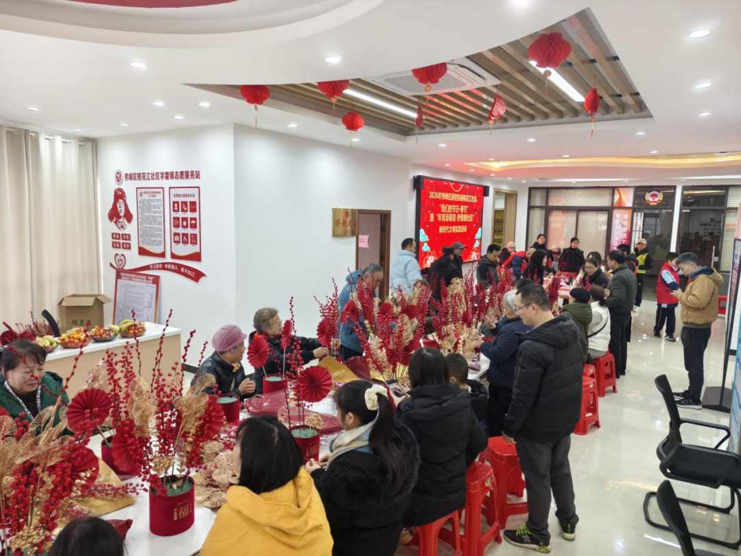2月10日,丽君街道桃花江社区开展“我们的节日·春节”暨“年宵添春意 侨情暖社区”新时代文明实践活动。“鲜红的年宵花搭配金灿灿的装饰花,有这么一盆摆在客厅,过年迎客看着都喜庆!”,来参与活动的曾阿姨说。