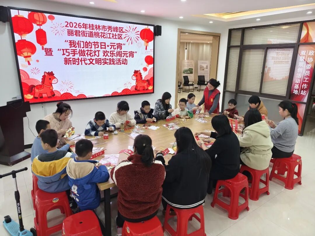 在元宵佳节来临之际,秀峰区丽君街道桃花江社区开展“我们的节日·元宵”暨“巧手做花灯 欢乐闹元宵”新时代文明实践活动,组织辖区亲子家庭制作马年造型花灯,共庆佳节。
