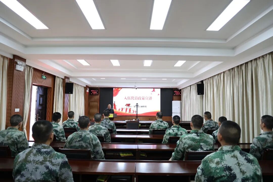 随后,秀峰区退役军人事务局接力开展政策宣讲。工作人员围绕《入伍优待政策宣讲》及相关配套政策,系统解读了优待抚恤、安置就业、教育培训、权益维护等新兵们普遍关心的问题。针对服役期间可能遇到的立功受奖政策、家庭优待金发放标准,以及退役后复学升学、高职扩招、就业创业扶持等具体事项,工作人员进行了详细说明,并发放了政策宣传手册。在互动答疑环节,工作人员耐心解答了新兵们提出的各类问题。一名预定新兵问道:“如果在部队立了功,家里能享受到什么优待?”工作人员现场予以答复,并勉励大家安心服役、苦练本领,用青春和热血为国防事业贡献力量。