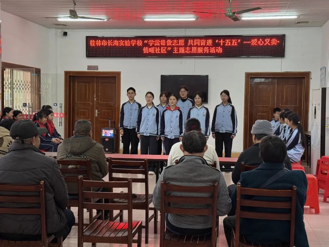 为大力弘扬雷锋精神,深化校社共建融合,3月20日下午,桂林市长海实验中学联合秀峰区长海社区成功举办学雷锋主题慰问活动。活动以文艺汇演为纽带,将青春关怀与精准帮扶相结合,为辖区低保对象、特困人员及低收入困难群体送上了一场兼具精神滋养与物质支持的暖心盛宴。