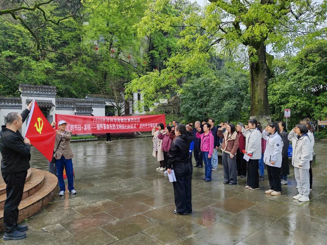 3月31日上午,九岗岭社区联合秀峰区退役军人服务中心、丽君街道办事处和桂林榕湖酒店管理集团有限公司等单位,组织20余名党员干部前往蒋翊武先生就义处纪念碑开展“我们的节日·清明——文明祭扫树新风 清明赓续爱国情”新时代文明实践活动。