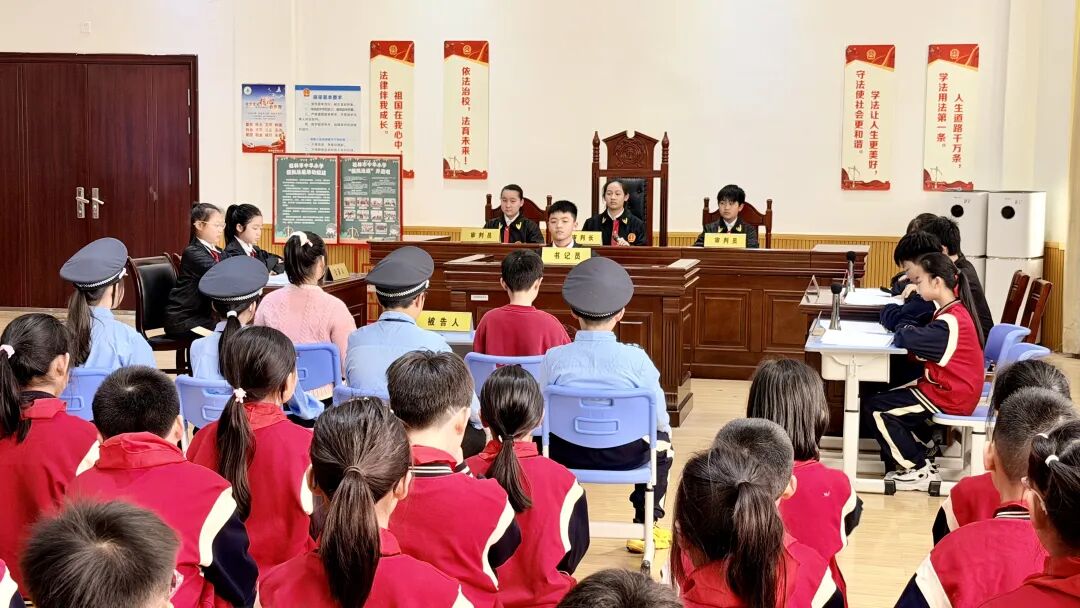 “全体起立!请审判员入庭!”3月30日下午,桂林市中华小学兴华楼内一场学生自主扮演的“模拟法庭”正式开庭,全校师生通过现场与线上方式参与此次法治实践课。