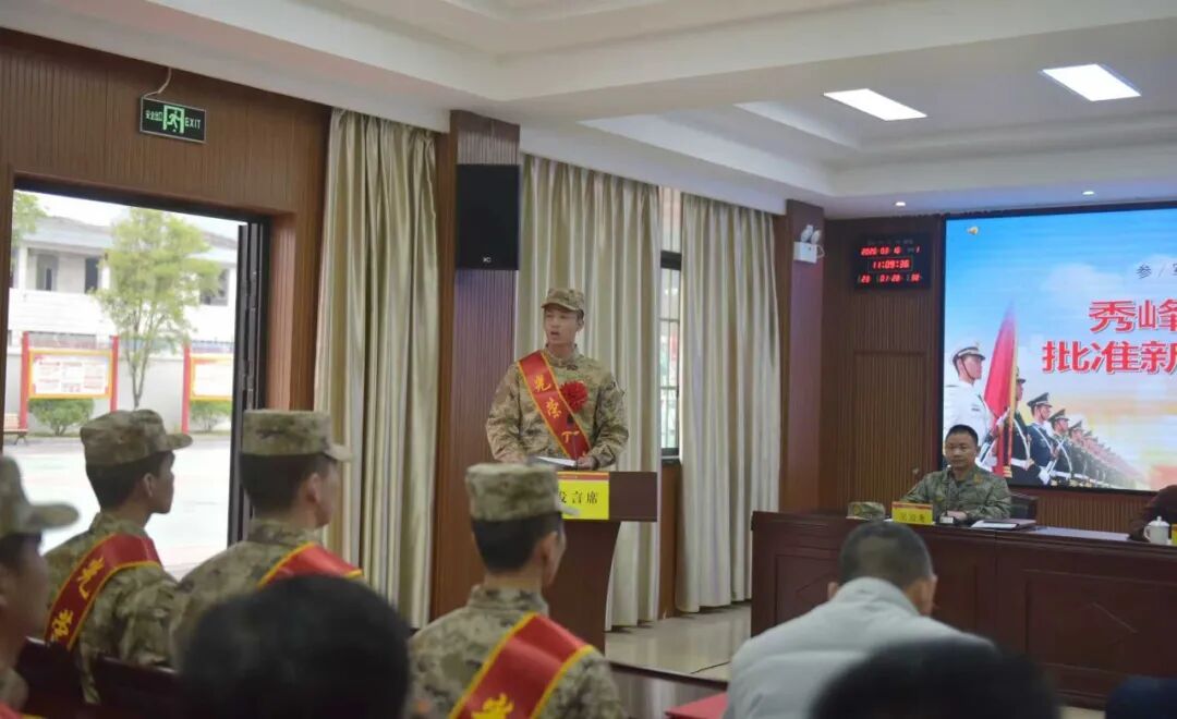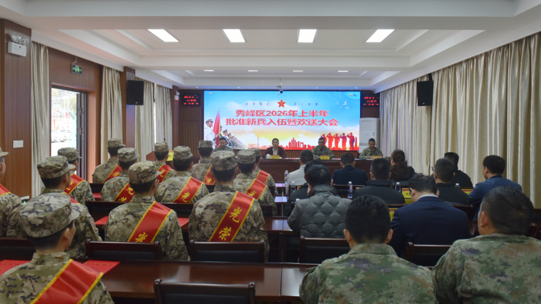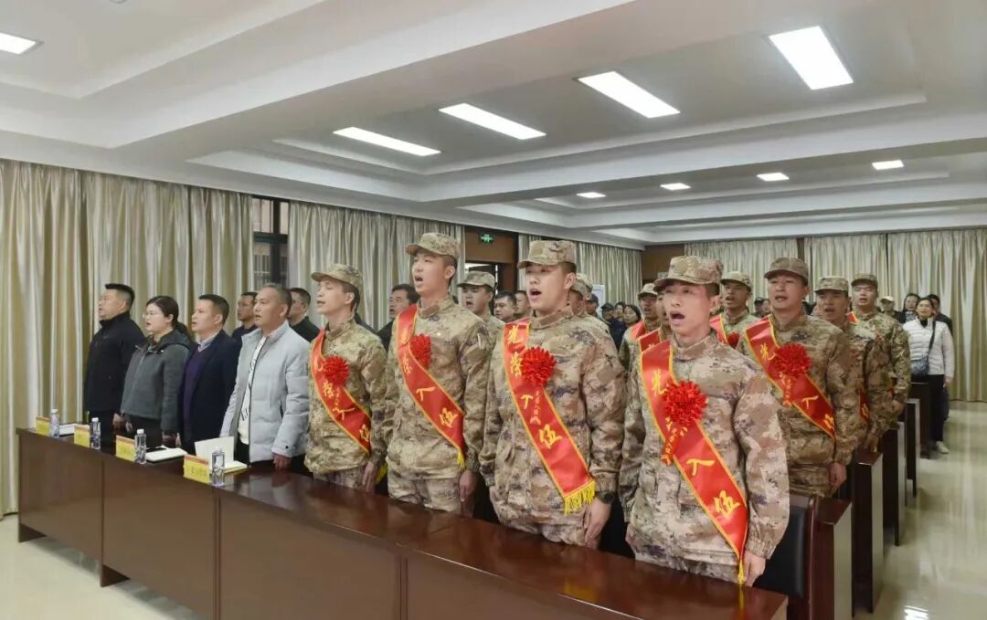 欢送大会在庄严的国歌声中拉开帷幕,新兵们身着崭新军装,肩披鲜红绶带,胸戴光荣红花,精神抖擞,意气风发,挺拔的身姿、坚定的眼神,无不展现出新时代秀峰儿郎的昂扬风貌与报国决心。