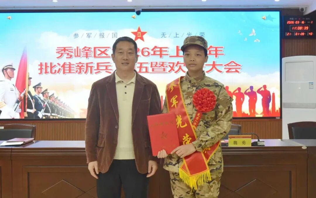 据悉,为确保新兵顺利入伍、快速适应军营生活,区人武部前期已通过英雄授课、实景体验、情景演绎等方式,对新兵进行了思想淬炼、作风锤炼与能力提升,为向部队输送高素质兵员奠定坚实思想基础。下一步,秀峰区将持续传承拥军优属、拥政爱民的光荣传统,扎实做好新兵跟踪服务和家属帮扶工作,协调解决新兵家属实际困难,让新兵在军营安心服役、放心建功,持续为国防和军队现代化建设输送优质兵员,进一步营造“一人当兵、全家光荣”的良好社会风尚。