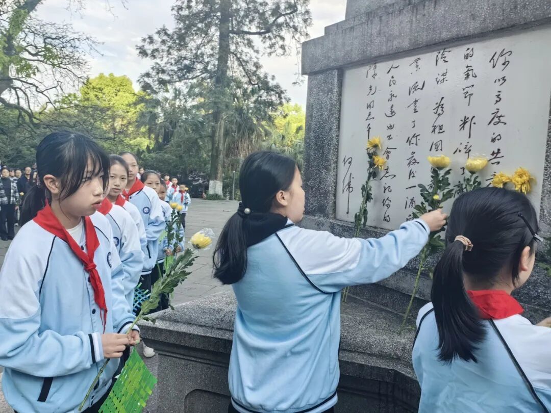 桂林市乐群小学组织党员教师、团员教师、少先队员及家长代表,赴七星公园烈士墓开展祭扫活动,打造了一堂生动的“行走的思政课”。少先队员将亲手制作的非遗竹编作品置于墓前,竹编上工整书写致敬诗词,以传统手工艺传递对英烈的崇高敬意。参与学生表示:“制作竹编时我一笔一画都很认真,聆听先烈故事让我明白今天的幸福生活来之不易。”(通讯员:卢彦辰)